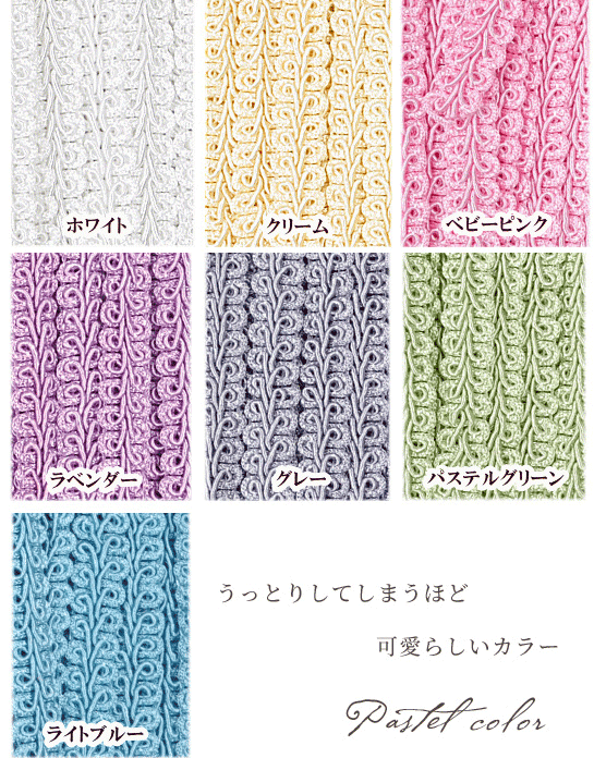 )ブレード7mm幅 5ヤード(約4.5m)全18色落ち着いた色合いのセピアカラーから明るく可愛らしいパステルカラーまでとっても豊富な全18色!!雰囲気に合わせて大人っぽくしてみたり、可愛らしくしてみたり・・・細めの幅のブレードなので用途も豊富♪